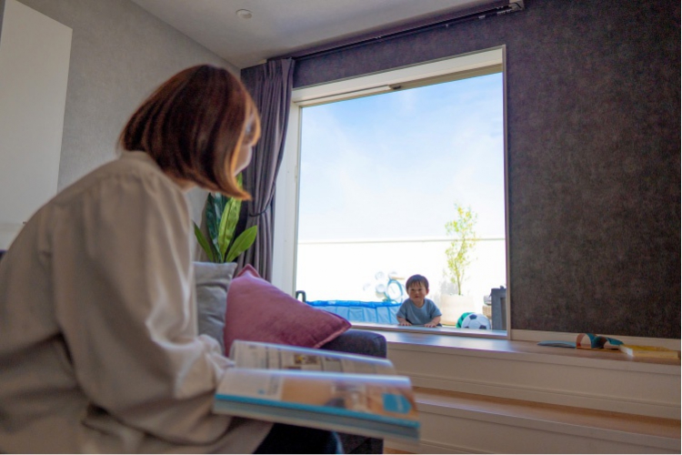子どもたちは動きはじめると目が離せませんね。でも、スカイリビングならどこかに行ってしまうこともなく、見守れるから安心。