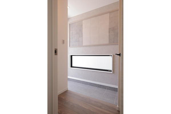 洗面・脱衣所は水をたくさん使う場所だから、濡れても安心な素材をセレクト。お風呂上りにお子さんが走り回っても大丈夫!